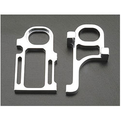 Extended Pod Plates for Associated Style Pan Cars - Get more gear on your Associated style pan cars with our extended pod plates. The ride height adjustment holes are moved back 10mm and 0.090 lower than the stock pod plates, allowing increased tire usage and larger gear selection . Machined from light weight aluminum. Polished aluminum.